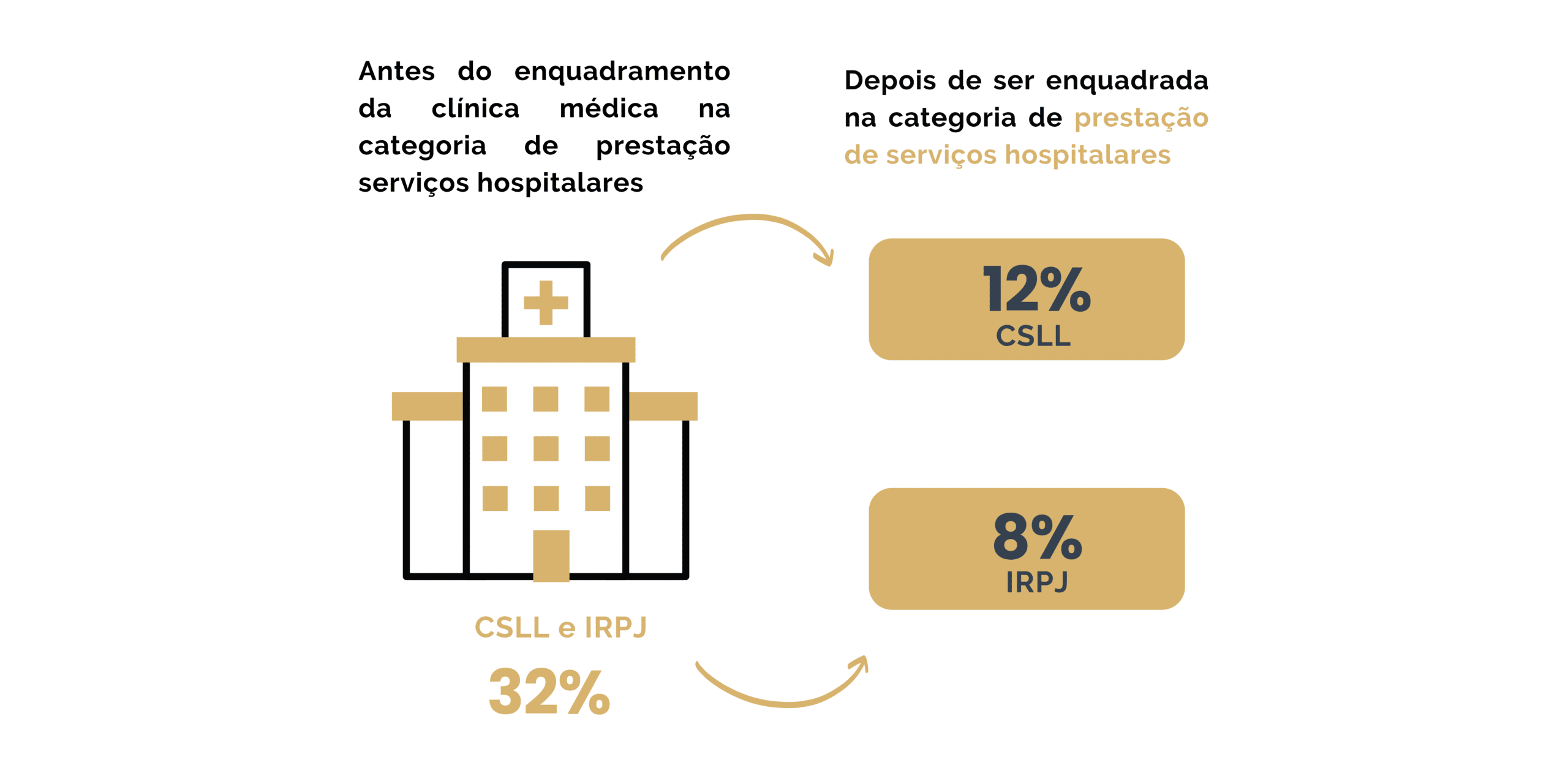 Tal entendimento foi recentemente aplicado no REsp nº 1.737.468, em que restou decidido pela redução da alíquota do IRPJ de 32%, para 8%, em favor de uma Clínica de Fonoaudiologia.